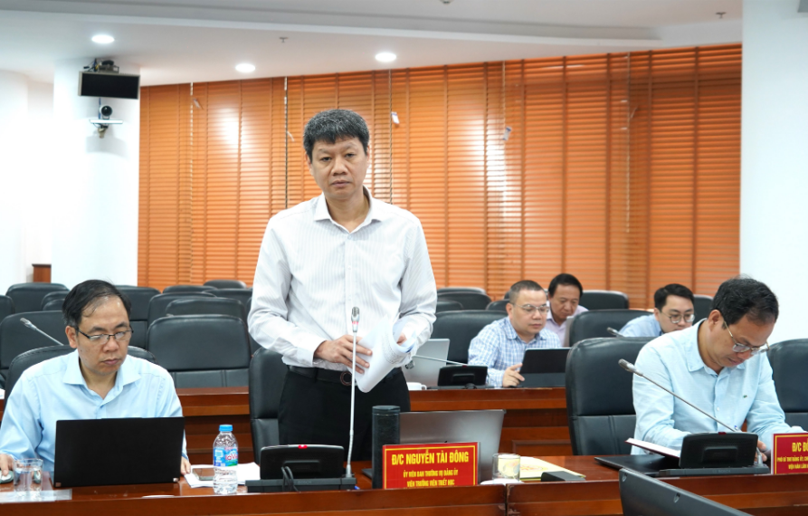 PGS.TS. Nguyễn Tài Đông, Trưởng ban Tuyên giáo và Dân vận Đảng ủy, Phó Trưởng Ban Chỉ đạo 35 Đảng ủy Viện Hàn lâm trình bày dự thảo Kế hoạch tổ chức, Thể lệ, danh sách Ban Tổ chức, Tổ Thư ký Cuộc thi chính luận về bảo vệ nền tảng tư tưởng của Đảng lần thứ VI, năm 2026 của Ban Chỉ đạo 35 Đảng ủy Viện Hàn lâm